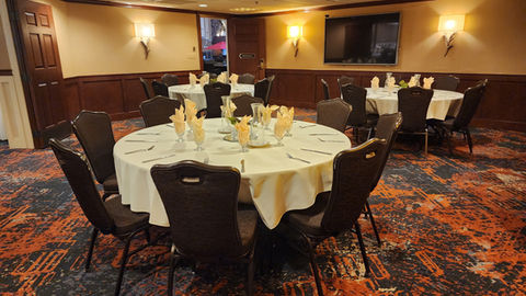 With flexible seating arrangements to cater to various event needs, the Vadnais Room's versatile layout allows for configurations ranging from banquet-style set ups to theater-style seating with up to 40 people.